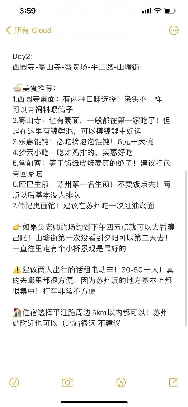 ⚠️建议两人出行的话租电动车!30-50一人!真的去哪里都很方便!因为苏州玩的地方基本上都很集中!打车非常不方便