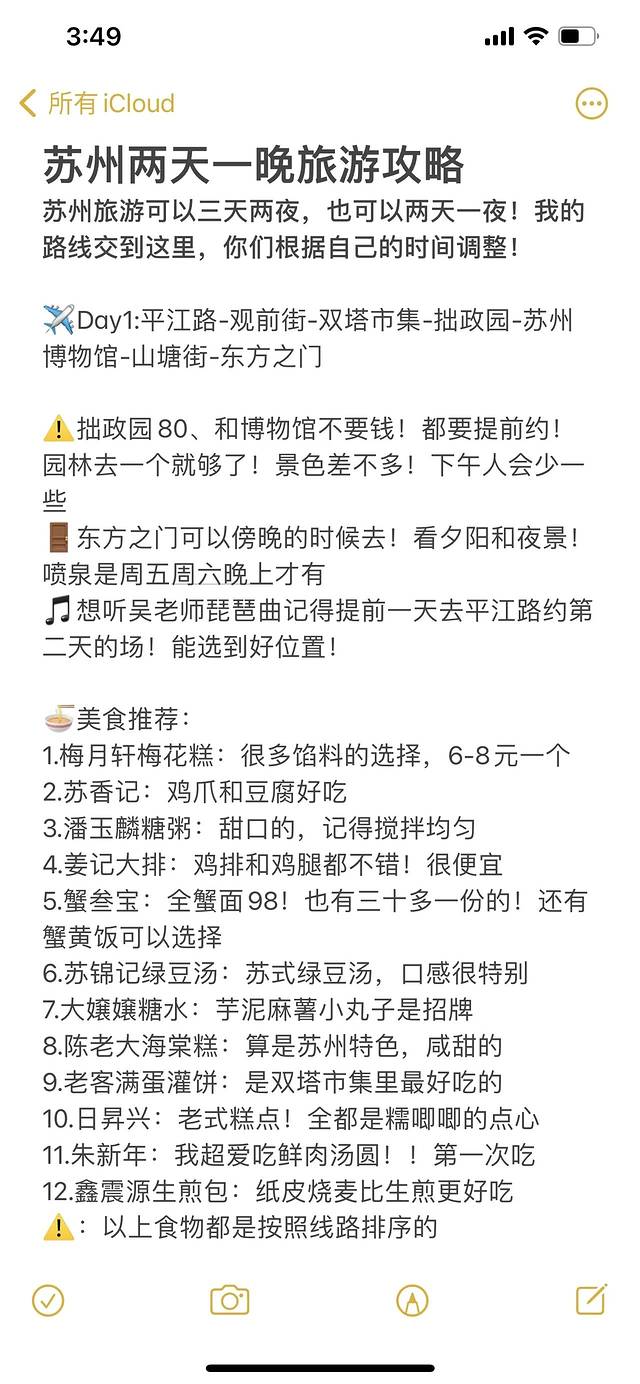 苏州icon旅游可以三天两夜,也可以两天一夜!我的路线交到这里,你们根据自己的时间调整!