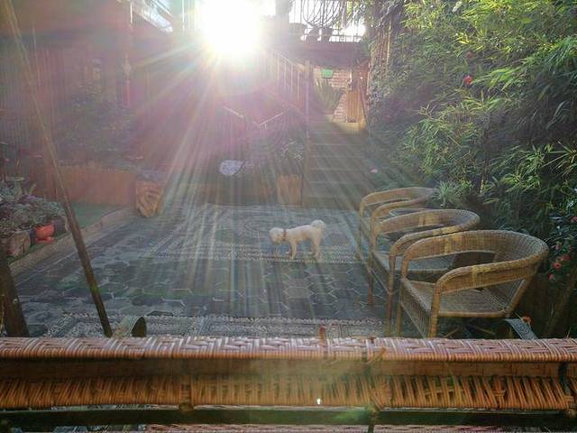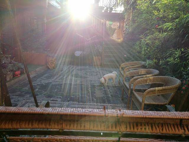 作为云南之行的最喜欢的客栈就是丽阳客栈了,客栈是一个不是很好找的地方。就在山头上不过就是这样幽静的豁然开朗,看到这个客栈就觉得很温馨。刚刚进去的时候就看到了狗狗。白色狗狗一直在客栈里面转悠,这就是我理想中客栈的样子,丽江。丽江的客栈,花团锦簇。整个小院子里都种满了花。最喜欢客栈应该是有二层楼然后上去可以纵观整个古城这里就是这样的样子。房子都是木质结构,看起来非常应景,走上阳台二楼风景很好。十分开拓也能看到整个古城的样子。。客栈一晚上收费并不高,相比于楼下酒吧旁边的客栈这里的客栈,独具一格。安静,适合休息,又能看得到全程的景观,还有这么多的狗狗陪着你。