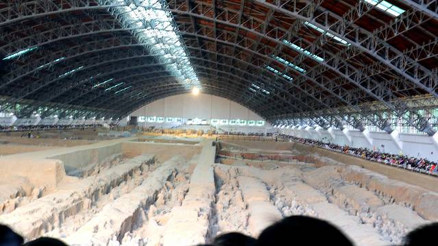 1号坑人是最多的。一进去就要做好战斗准备。毕竟主要的兵马俑都在一号坑。那确实是人挤人的情况。其实没必要挤在进去的地方。尽量往前走,后半部会相对来说没那么挤,毕竟前半部已经消耗掉一些人流量。其实2号和3号里面也是值得看的。