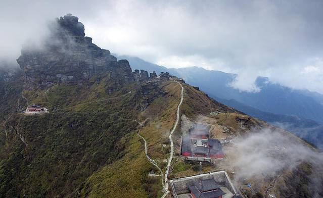 临近山顶,一片宽阔的草地映入眼帘。在草地的尽头,一座古老的寺庙静静地伫立在那里。这是佛教名山——梵净山的标志性景点之一。我们在这里休息了一会儿,欣赏着周围的美景,享受着大自然的馈赠。