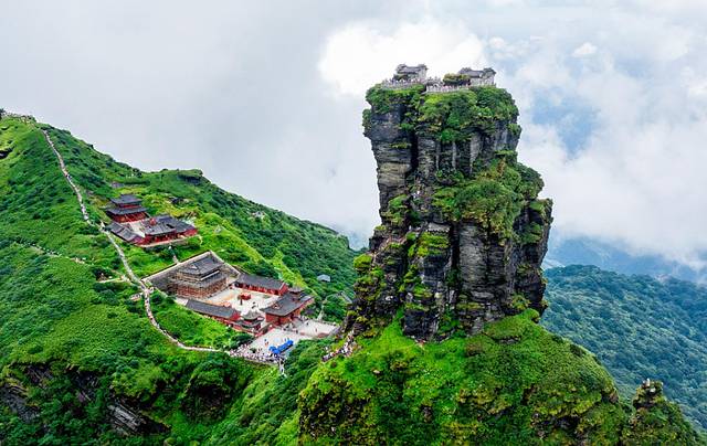 在梵净山,最令人叹为观止的景点当属金顶玉京山。登上金顶,俯瞰群山,万千景象尽收眼底。这里还有神秘的古迹——梵净山寺,为游客提供了一处感受佛教文化、虔诚朝拜的场所。