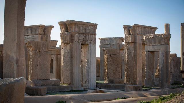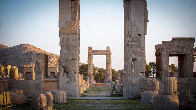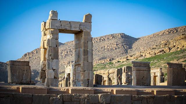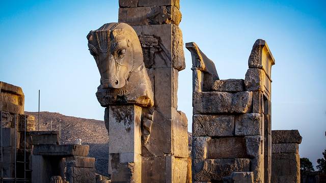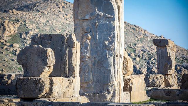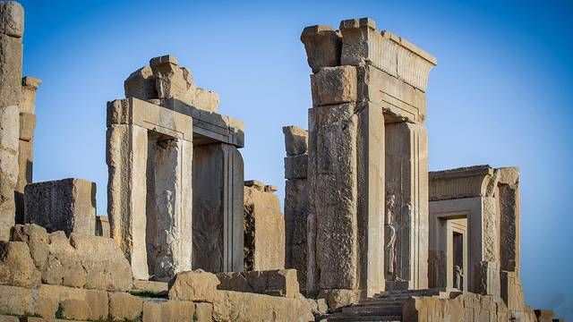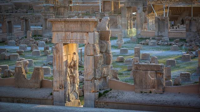 波斯波利斯毁于亚历山大东征的战火,在几千年时光蹉跎后,留下的骨架早已破败不堪。无论是百柱宫,还是大流士、薛西斯的宫殿,剩下的仅仅是散落的石块和空荡的门框了。