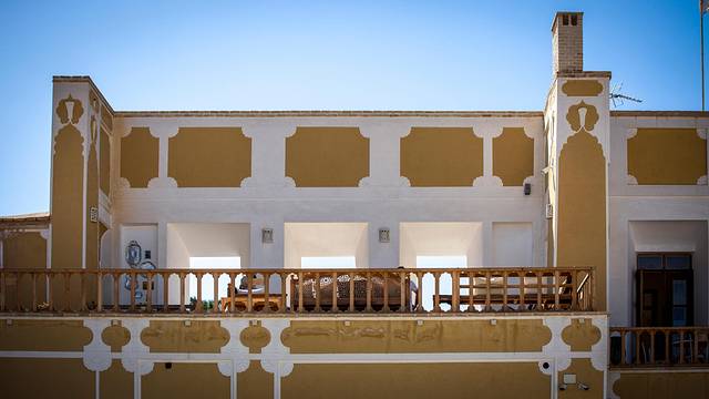 不规则的长廊让每一个房间都充满了神秘,步入其内也许是个普通的房间,也许就是个可以欣赏沙漠绿洲的大露台。豪宅周围,水池两侧围绕着众多石榴树、松柏和葡萄架,墙里墙外的差异,让你绝对意识不到你正处于沙漠腹地。
