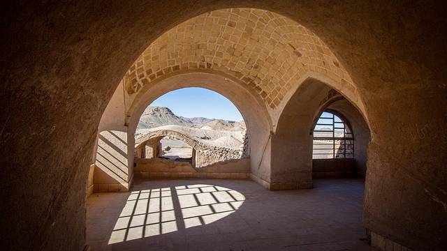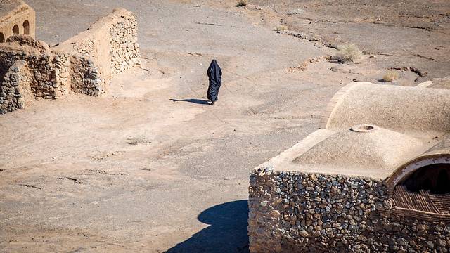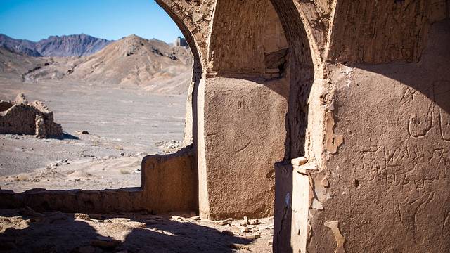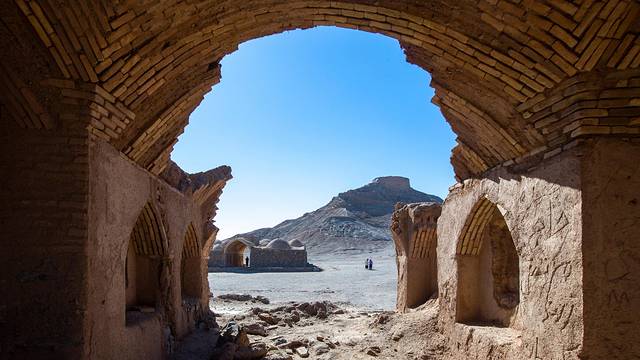 在亚兹德城郊的一处沙漠中,在几处土山顶的圆形建筑格外显眼,这里被称为寂静之塔,是一个拜火教教徒升天的地方。贫瘠的沙漠搭配光秃秃的矮山,远处城市被绿色的屏障包围,可以说就是伊朗这个国家最常见的风景。此处与他处不同的,是这片沙化的荒漠中有几处人工的痕迹。