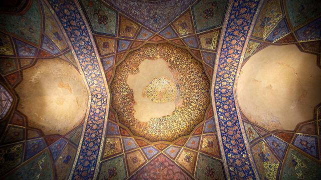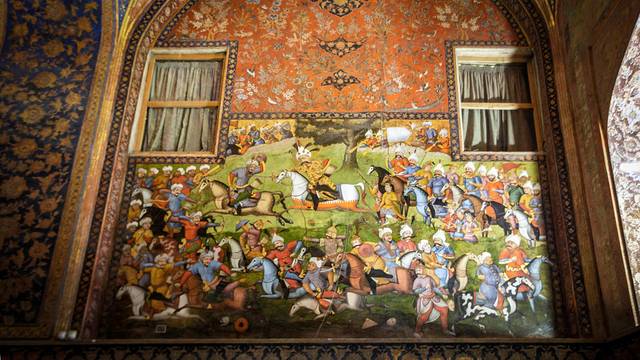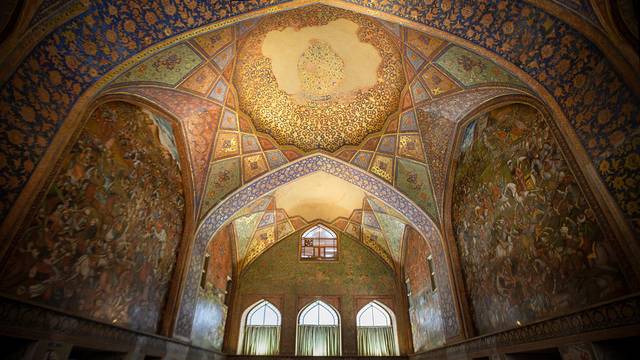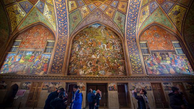 和其他波斯建筑一般,四十柱宫宫殿用复杂的拱顶、耀眼的镜子和马赛克装饰着。大厅房顶的壁画是四十柱宫最耀眼的存在,也是第二个不容错过的内容。