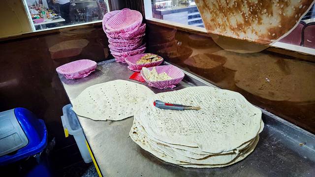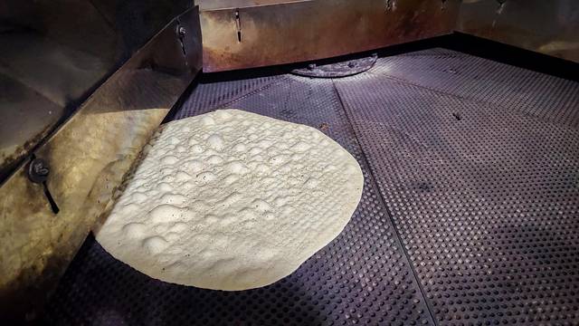 除了米饭,在伊朗另外一款主食就是烤饼!这种烤饼类似于我国新疆的烤馕,不过要比馕薄一些,大一些。新出炉的烤饼香脆可口,在饭店里会从前餐一直供应到主菜,被当地人深深喜爱。