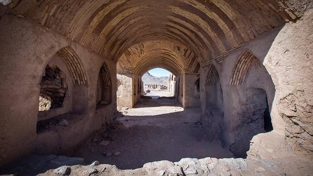 相邻的矮山顶有两座高墙围绕的建筑,圆形不封顶,走进其中也见不到什么奇特之处,除了用碎石铺设的地面就只有中间一个两米深的土坑。而山下,则零散分布着一些用石头和土坯搭建的穹顶房屋,不过都已被岁月磨去了光泽,残破不堪了。