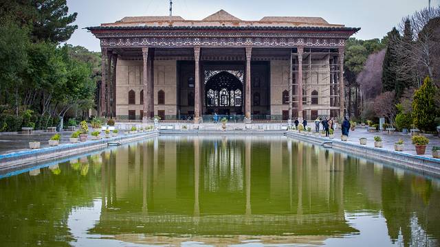 如果说亚兹德的多莱特阿巴德花园充满了工匠智慧的话,那位于伊斯法罕的四十柱宫则彰显了皇家宫殿的奢华。这座阿巴斯二世在1647年建造的皇家园林,让人可以一窥当年萨法维王朝的鼎盛。
