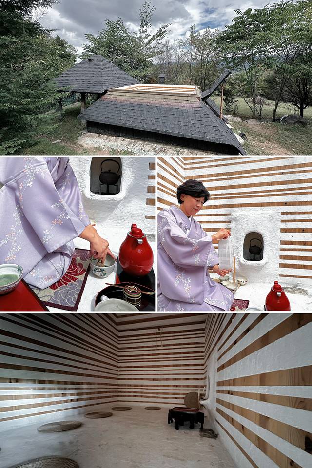 另外一处茶室名为低过庵,好像是进入了小矮人家里,当移去屋顶,阳光直射进屋内,似乎将内心世界都照亮了,在这里喝碗抹茶,吃个和果子,和三五好友围坐畅谈,这感觉棒极了!