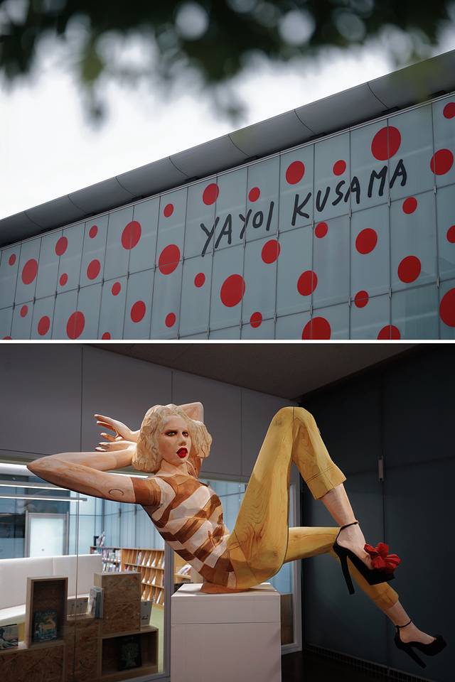 除了草间弥生女士的展览,美术馆内还有别的艺术家的作品。此外,整个美术馆的建筑,以及馆外草间弥生的作品,都特别适合拍美美的照片。