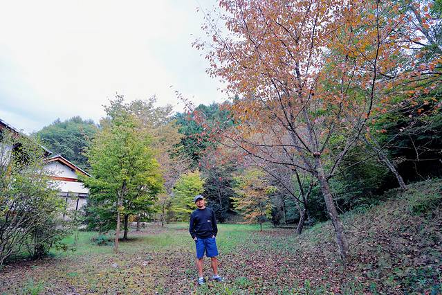 今天的住宿,是在一个要经过茂密森林地方的温泉旅馆,绿村横川茅葺馆。温泉旅馆的主楼是一个茅草屋顶的建筑,大厅里有当地食材的贩卖,通往房间的走廊有很多农具,以及早期的滑雪工具,还有祭典的一些东西,古朴又神圣的感觉。这里的秋色已经渐浓,在房间里就可以欣赏这满目的秋色。