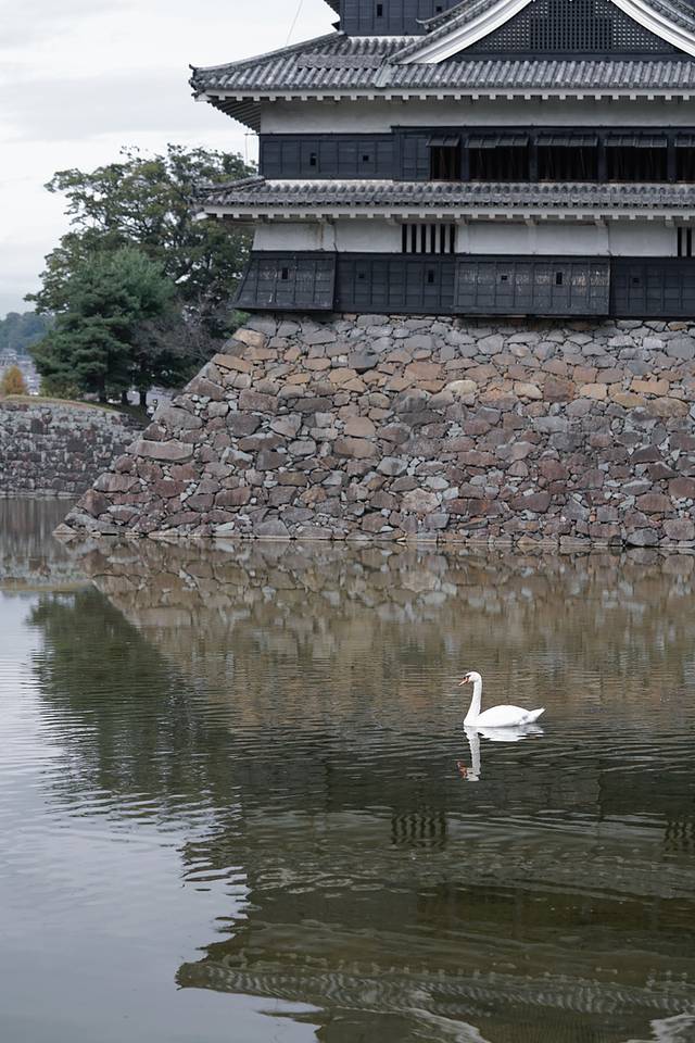 松本城护城河外围可以免费进入,天鹅、锦鲤、云卷云舒……日与夜的转换,松本城也会呈现出不同的美。买张门票,走进松本城内,如今这座美丽的庭院,无论春夏秋冬都能带给你惊喜。走进天守阁内部,似乎能感受到曾经这里所发生的一切;登上顶端,整个松本市尽收眼底,远眺远处的群山,景致无比壮观。