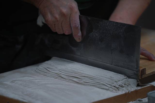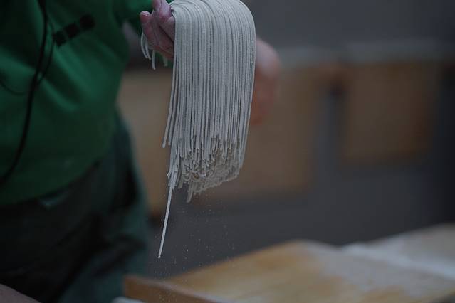 言归正传,游乐庵使用的是石磨制作的日本产黑荞麦粉,加上当地横谷峡谷的天然泉水,不添加任何东西,制作出来的荞麦面无论是口感还是筋道,都是最地道的。