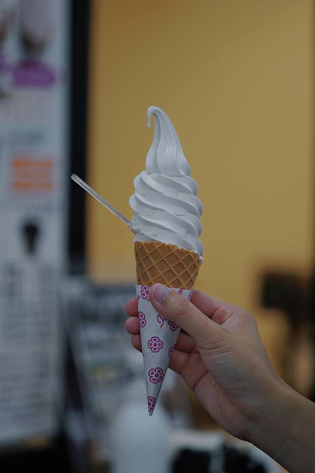 喝完酒,那就去近在咫尺的上诹访站附近的一家冰激凌店,品尝一下使用白桦高原的新鲜牛奶,不使用防腐剂、色素、香精、人工甜味剂等,制作出以食材原本的美味为主的“新鲜牛奶软冰激凌”。店名:雾之站Arc诹访店。