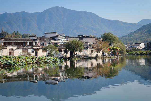 皖南古村落是世界文化遗产,华夏文明瑰宝。宏村始建于宋政和三年,初名弘村,是汪氏家族聚居地。清代中朝为避乾隆帝“弘历”之讳,而更名为“宏村”。南湖和月沼的倒影之美,是徽村景色中排名第一的。