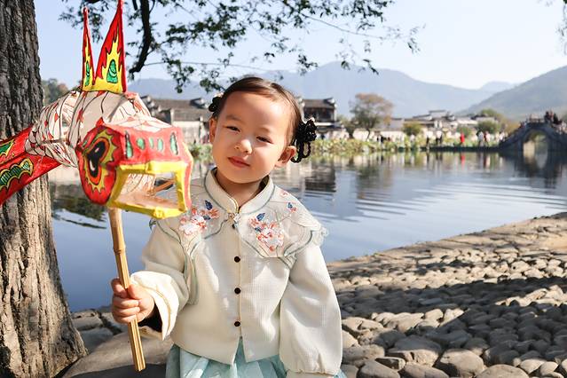 相隔九年,又一次走进画里宏村,依旧如同一墨泼来,黑瓦白墙的马头墙错落有致,坐落在一片山水之间,还是一如既往的喜欢徽州,喜欢这水墨宏村,这一次带着小可爱,穿上马面裙,融入了这幅画中。