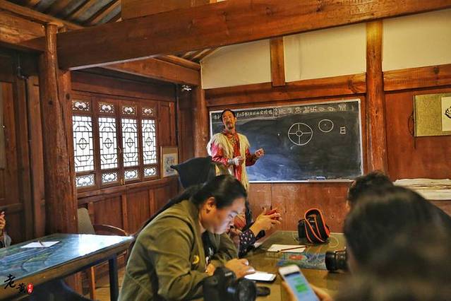 说到这个意外收获,其实也怪我们平时没有仔细的游玩过大研古城。这次随着向导的步调,我们和古东巴文字亲密接触。跟随老师,我们一起学习了一下东巴文的历史和简单的书写。据老师介绍,古东巴文字是目前世界上唯一还在使用的象形文字,就这一点就足以看出它的地位是非常的高的。学习东巴文字,对于理解象形文字,甚至甲骨文都会有一定的帮助。我们在大研古城官门口的墙壁上,也看到了这样的文字,其文字形态非常的形象,可谓是见木画木,见石画石。这些文字都代表着深远的历史,就像一个时间长廊,让我们去体会那久远的辉煌时光。如今能书写这样文字的人已经越来越少,老师在给我们讲解中,那透露着期望这样的文化能被更多人热爱和接纳,让它们能延续保存,不至于消亡殆尽!每段历史,就像天上繁星,虽然离我们遥远,但终究能闪耀出自己的光辉,组成璀璨的星空。而当一颗星星的坠落,也难免让人感到惋惜和不舍,更别说,这是积累了几千年的文化瑰宝!