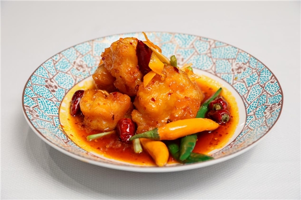 鲜味浓郁的巨大白虾仁,炸过后淋上改良宫保汁,外皮酥脆,内里鲜嫩多汁。