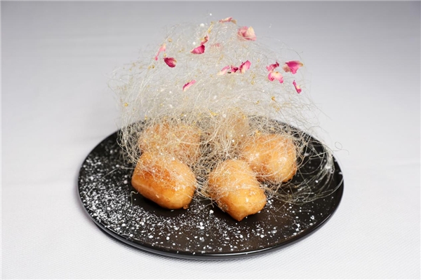 造型惊艳的一道甜品,香蕉裹浆炸脆,摆在焦糖笼中,外香脆内软糯,口感丰富,清甜不腻。