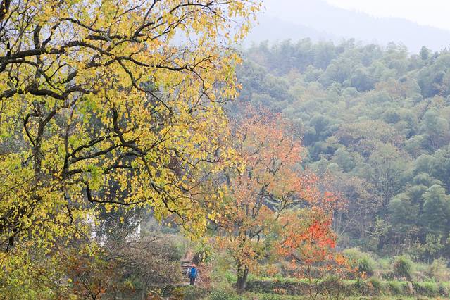 赏秋:出门看好天气,晴天最佳,雨天的古村落也别有一番风味。塔川的树叶基本到11月中下旬就五颜六色了。