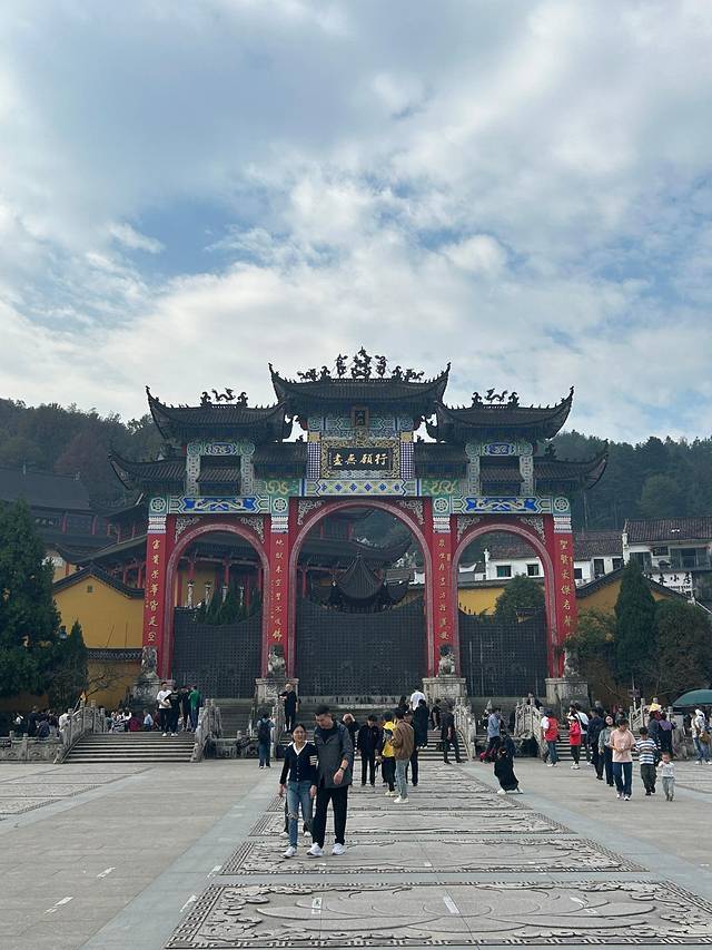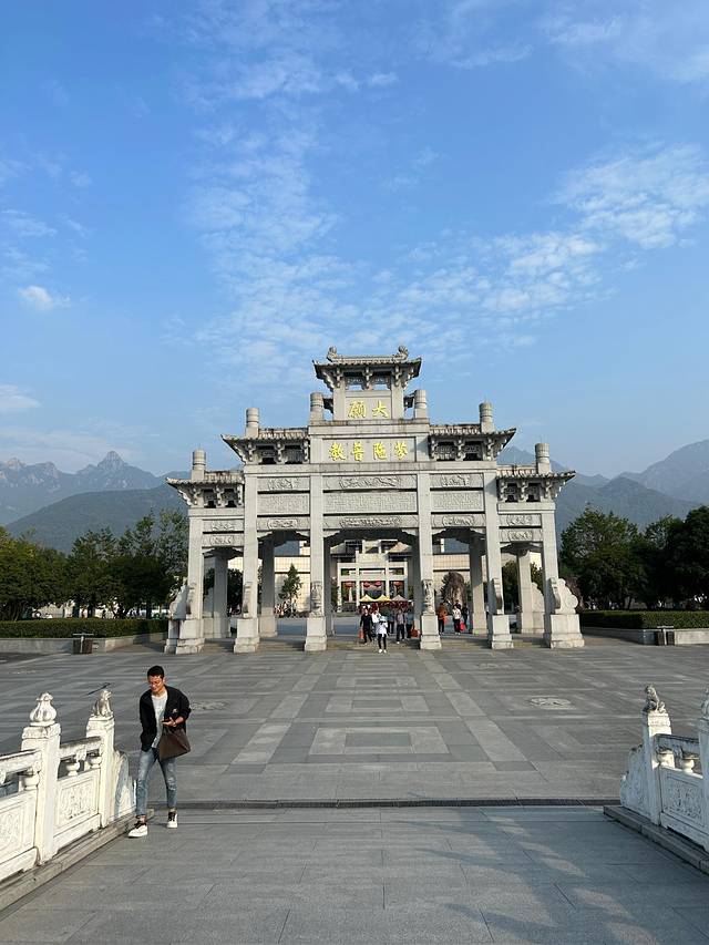 从地藏禅寺出来,首先看到的是一座山门牌楼,上有匾额“行愿无尽”,表示人们的良好愿望没有尽头直于成佛,意即活到老修行到老。