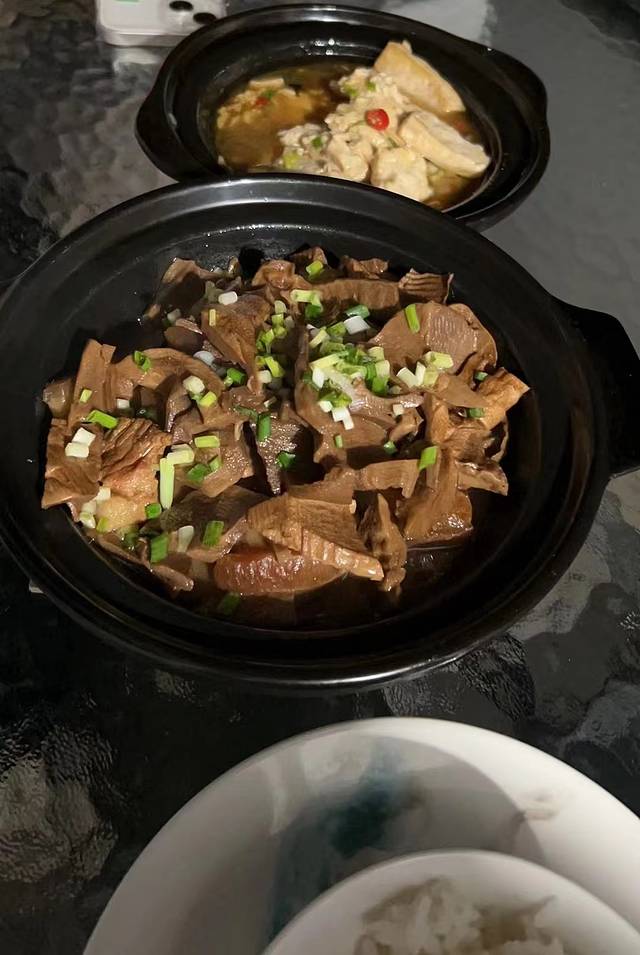 在住的民宿老班开的饭店里吃了简餐后去九华街上逛逛。镇上的菜价格基本上差不多,笋干烧肉48元~58元,家常豆腐28元,米饭5元1份。