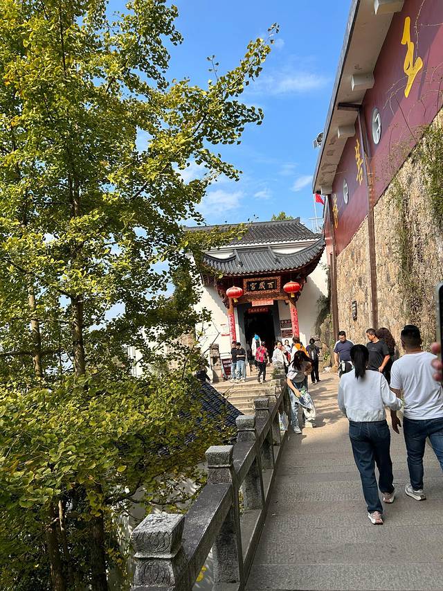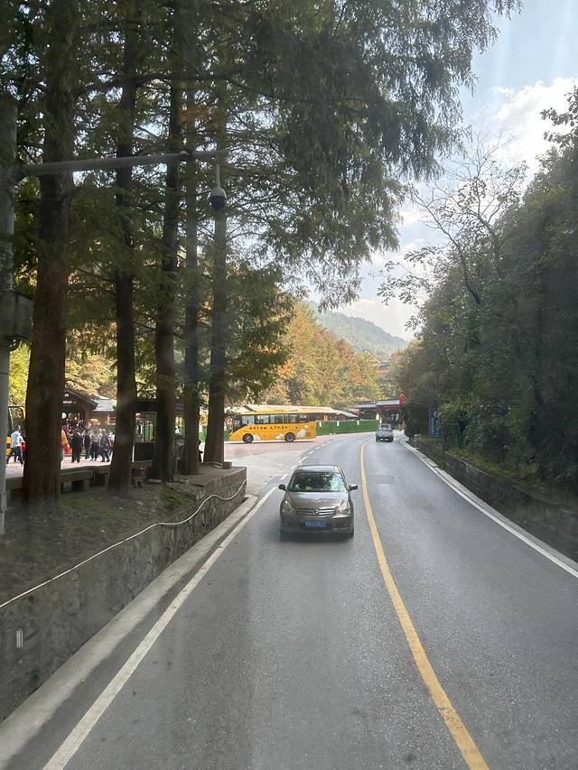 九华街坐落化城盆地,四山环抱,方圆约4平方公里,是九华腹地中一颗明珠。唐时金地藏重建化城寺,九华街即成雏形;明、清时九华山香火极盛,以化城寺为中心的九华街初步形成。佛兴则商荣,九华街生意兴隆,一时间名噪东南。九华街是圣地的中心,寺院和佛事活动集中,是南来北往的香客和游人集散地。一千多年来,佛国沧桑,兴衰交替,九华街也随之历经波峰与波谷。 11:23分钟发车,20分钟左右到达九华山大门口。