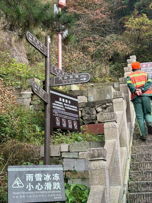索道站(上闵园)-拜经台-天台寺-十王峰-索道回,乘坐索道10分钟左右到拜经台,然后爬826级台阶到天台寺。十王峰位于天台寺正南,徒步前往约20分钟。索道往返约2~3小时。