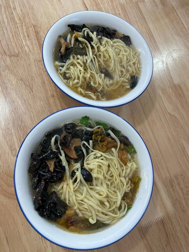 民宿的老板娘接到我们后,稍做休息,便去镇上找了一家手工面馆,先填饱肚子。三鲜面每碗售价15元,口感还不错。面店对面便是景区换乘点。