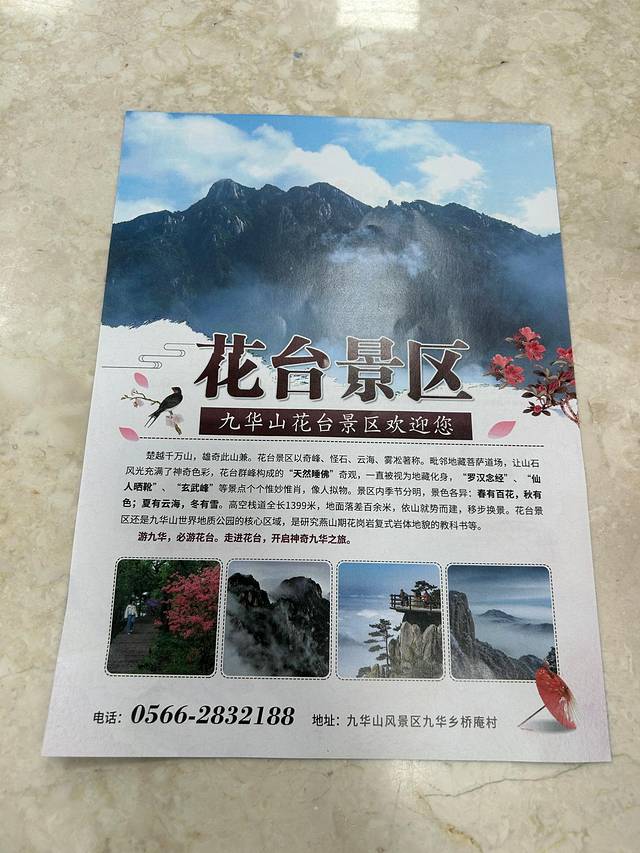 花台景区作为九华山核心景区之一,更是九华山国家森林公园、地质公园的核心地段,位于九华山中部,面积10平方公里。景区内风光壮美,景色绮丽,以奇峰怪石、云海雾凇、花的海洋而著称,素有“灵山九华,美在花台”的说法。