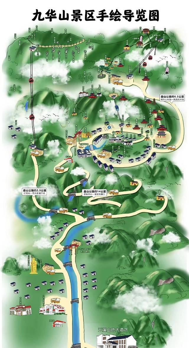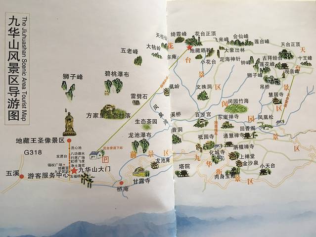 1、(2-3小时) :北大门-弥陀殿-地藏禅寺(慈明肉身)-月身宝殿(金地藏真身)-上禅堂-广济茅蓬-净洁精舍-净土庵-旃檀林(明净真身)-大悲宝殿-化城寺。