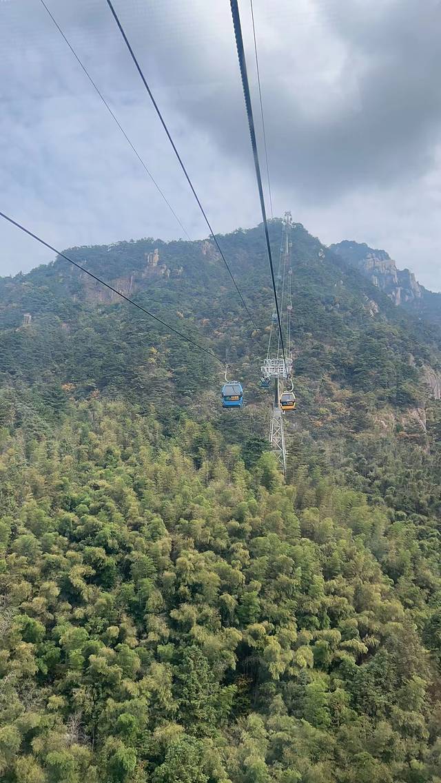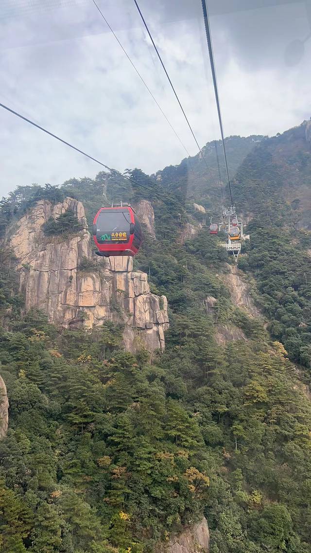 一车38人,2分钟左右的车程,没有座位,100元车费,排队1小时左右。在我前面的大爷大妈们,觉得排队太慢,排1小时,都差不多走不去了,加上票价又高,中途又折回去徒步登山。待我游玩结束,已无人排队。想坐单程的朋友,可以迟点去,省去了排队的时间。