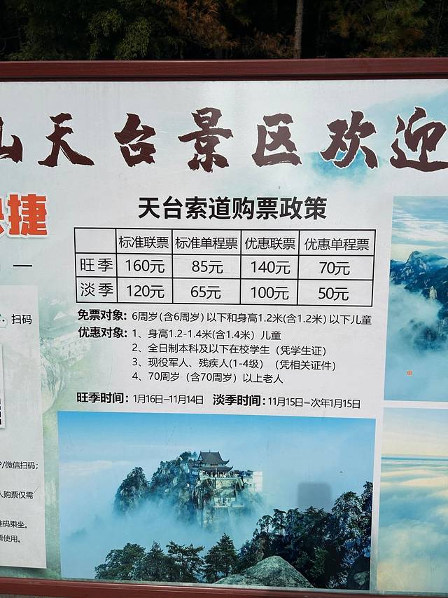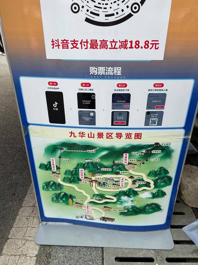 山上部分包括九华街景区,闵园景区和天台景区。从迎仙桥检票口进入九华街,需购买门票160元。网上与窗口价格都一样。