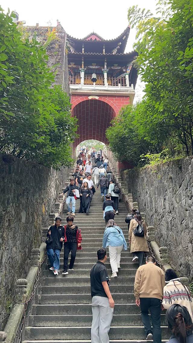 选择索道的游客多,徒步的比较少。直通车下午5点就结束了,坐缆车上去,时间上相对不自由。徒步可以欣赏沿途美景,还有好多寺庙可以去朝拜。各有千秋,看个人的想法吧。如果不赶下一个景点,可以缆车上去,徒步下山。