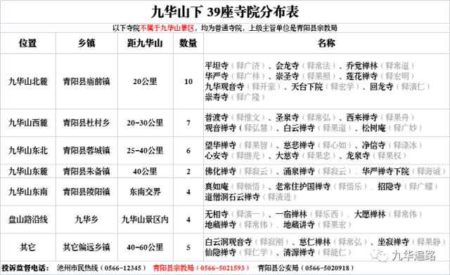 九华山105座寺院的上级管理单位是九华山宗教局。与青阳县没有关系。