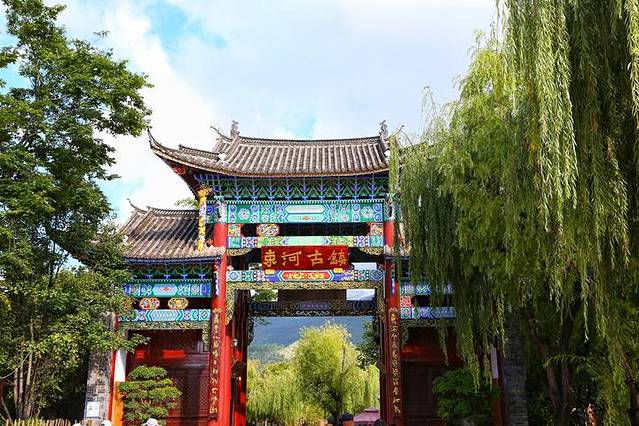 束河古镇 提前一天店家就联系了我们,让我们在束河古镇门口九点半集合,今天天气还不错,阿丽和我讲我们是幸运的 . 前几天的丽江一直在下雨,阴气沉沉,出来整个人心情都不好,没想到今天蓝天白云。
