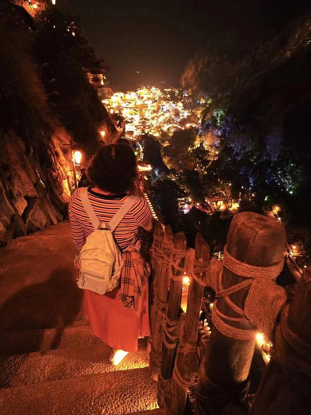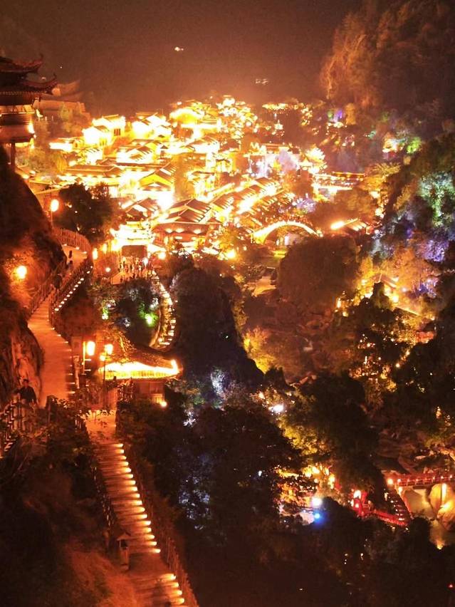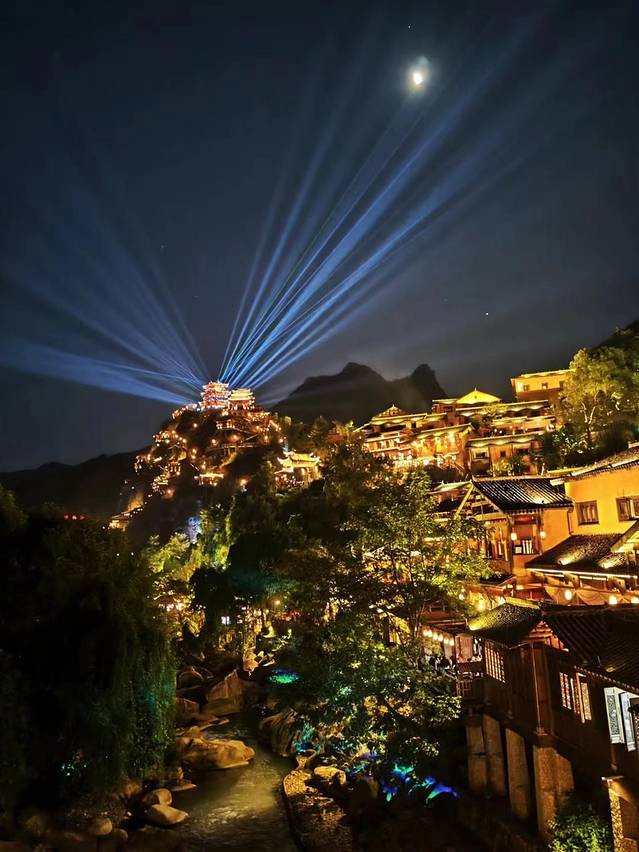 因为望仙谷距离婺源县有2个小时车程,所以选择报了个夜间一日游,去看夜景。望仙谷晚上6点会开始灯光秀,最佳观赏点是揽月桥,扶阶而上,可以登顶,俯瞰整个景区,真的好像置身于仙境。