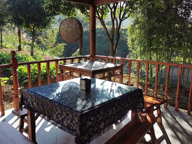 户外搭建凉棚,空气非常清新,坐在这里喝下午茶,非常的惬意