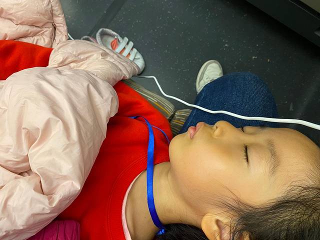 看完升旗我们就去火车站准备回家了,我们的火车是11:5出发15:56到哈,没想到哈尔滨下暴雪,我们晚上11:30分才下的火车,孩子都困得在火车上都睡着了,简直太遭罪了。而且火车上没人管没人问,也不说到底能不能进,我们在火车上一直煎熬着,好在前半夜我们回家了~!