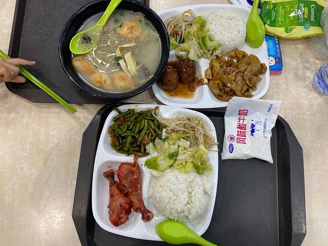 观畴园是唯一一个对外开放的食堂,一楼和三楼都可以,一楼就是盒饭二十多元一份两荤两素一个酸奶,素菜都是固定的。