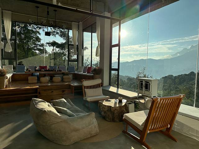 民宿:重点推荐一下我们找的这家民宿“初见远山”。我们在阿依树一路沿途都在寻住宿,大多是农家乐的升级版,也有高档的位于观景台里面的半山度假酒店。实地看后都不满意,在天已经快黑尽的时候,找到了这家,有落地的大玻璃窗,能看日出,房间设计感非常强。晚上有幸遇到老板,给我们泡红茶,聊到原来是哈尼族小伙子在昆明上大学读建筑设计,毕业返乡创业做民宿已有些年了,现在帮周围村民做一些事,带动家乡共奔致富路。在民宿周围吃饭,遇到有特色的设计,一问老板就会自豪的说“这是我们大学生设计的”,后来我们才知道,他们口中的大学生就是民宿的主理人。为民族传承人点赞!