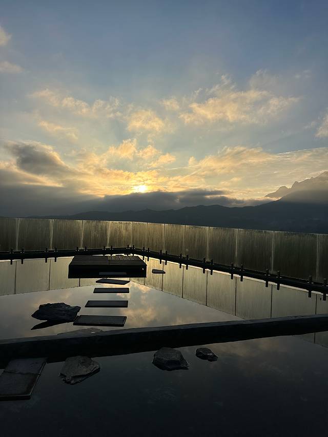日出:早上六点半,拉开窗帘,就能看到日出。为了全景更好,到民宿的大平台上。今天的云雾很厚,夜晚下了雨,等看到太阳的时候,已经是金黄色。
