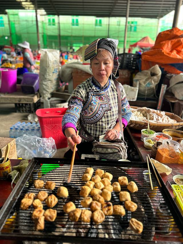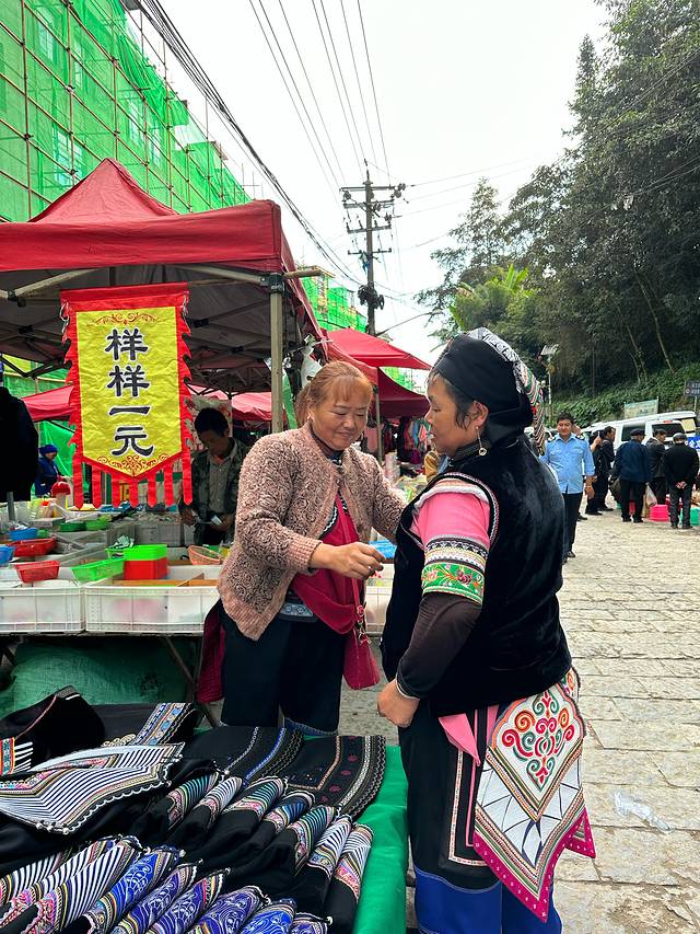 赶集:赶一场有民族特色的集市,是我们的一个心愿。正好第二天清晨,离民宿不远的“胜村”可以赶集。集市很热闹,很多人都穿的民族服装,卖哈尼族服装的也多。菜市场里尤其热闹,各种物品很新鲜,是那种沾着露水的鲜活,不同于城市里的“新鲜”。