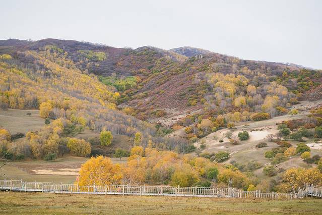 乌兰布统 -影视基地,登上木栈道的顶端用300mm长焦镜头可以拍到溢满屏幕的秋色人像大片