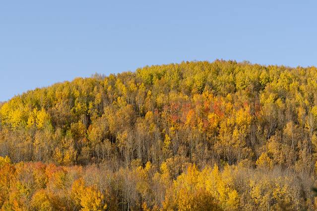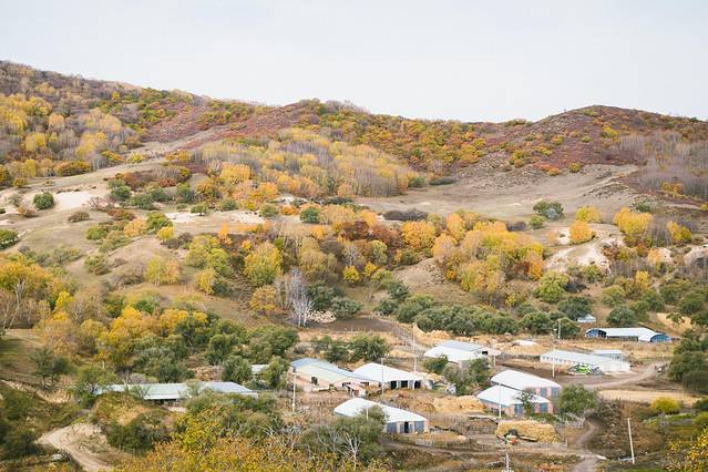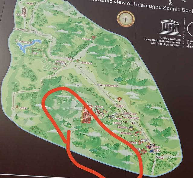 ❹亮点:沿主路进去后左手边几座连绵起伏的山上(下图红色笔圈起来的部分)全都是白桦林,非常震撼‼️层林尽染从此在我脑海中有了画面❗不知道是不是阴天的原因,影视基地和金蝉湖两个人最多的景点我都感觉很一般,尤其是金蝉湖