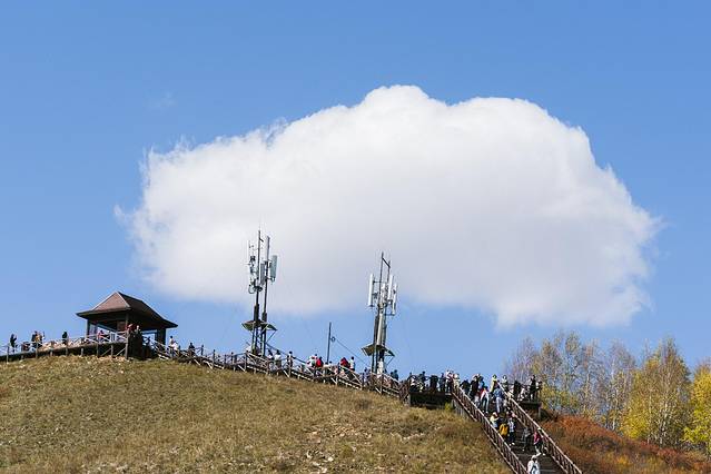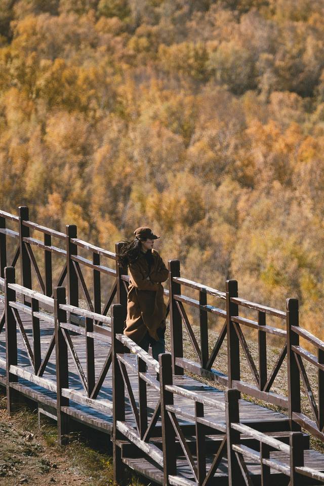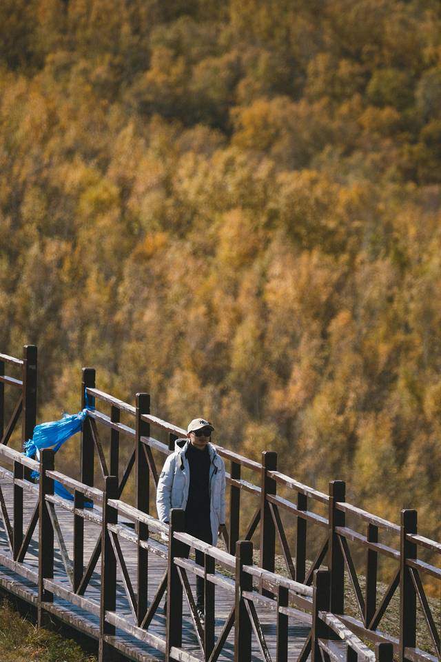 在影视基地找到的非常大片的一个机位,沿上面👆🏻照片里的栈道登顶到小亭子里(大概二十分钟),向山后望去就可以看到大片的白桦林了,很适合长焦