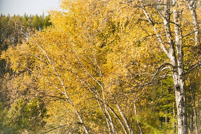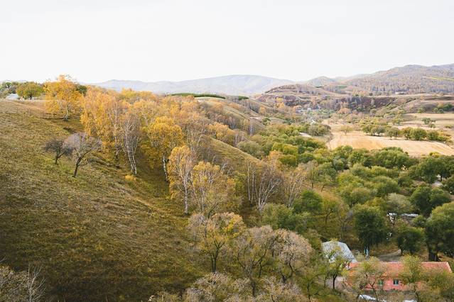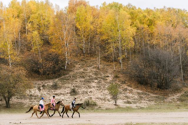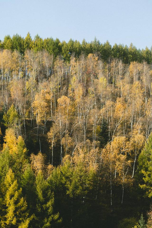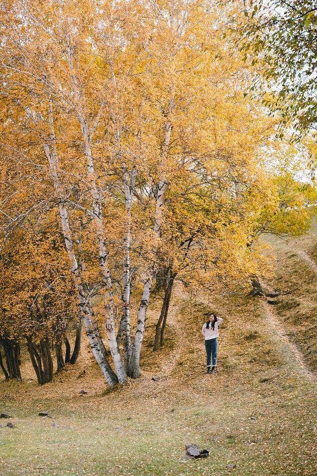 乌兰布统 景区里随处可见的白桦树,秋意浓浓