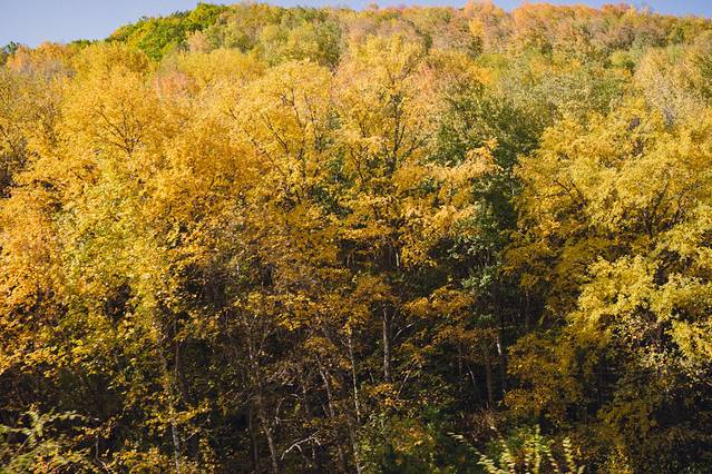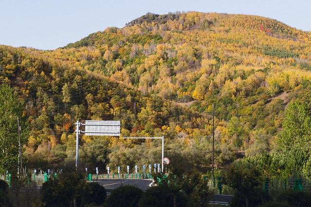 然后我们就正式踏上回家的路途了,没想到下面才开始有源源不断的惊喜等着我,从棋塞线一直到上了高速最后到大庙隧道一路上全都是灿烂的秋景,真正让我体会到自驾的乐趣❗哦不,应该是坐副驾驶的乐趣,要是开车我就不能这么专心地看风景了,对不起我对象,本来想跟他在大庙之后的服务区换的,结果五公里的隧道过后仿佛穿越了一般从秋天变回了夏天,山上都是绿色了
