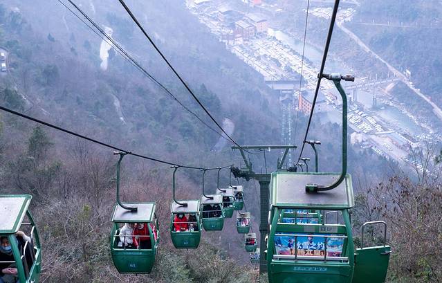 从成都出发,到达景区也不过3小时左右,直接从入口处乘坐缆车上山,便捷性倒是很高,坐上缆车看着身旁山野的秋冬之色,快掉光叶子的树木,和那些还处于红黄的树叶交织,感觉冬天即将占据主场。